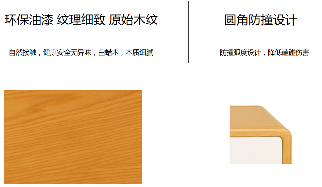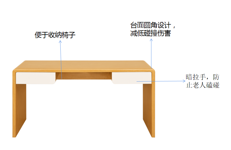 書桌 基材:為實木白蠟木框架結(jié)構(gòu)。 適老化處理 臺面圓角設(shè)計,暗拉手搭配,減低碰撞傷害 桌底離地高不低于650H, 便于收納椅子