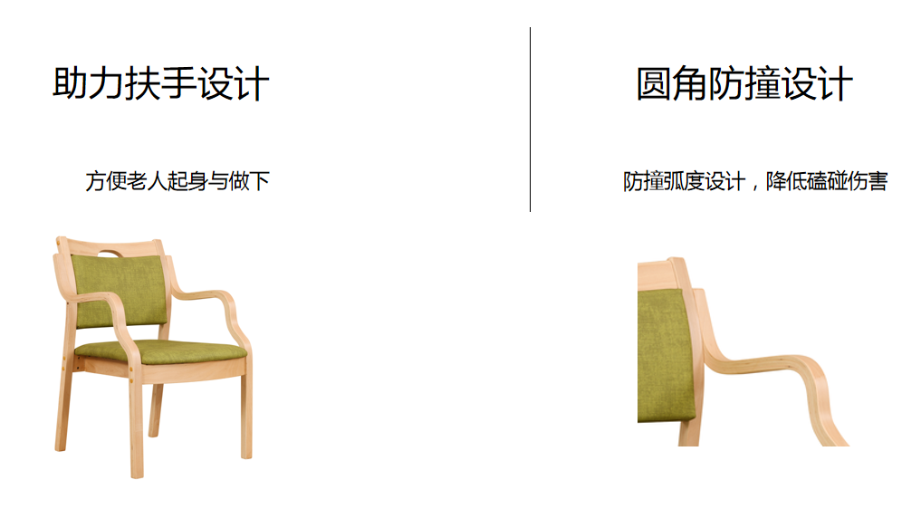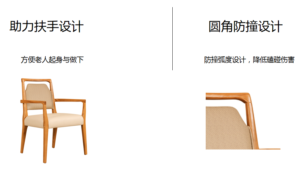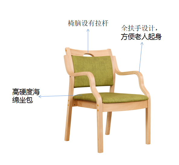 基材:為實木白蠟木框架結(jié)構(gòu)。 適老化處理 坐面高450H,扶手高620H,半扶手設(shè)計超硬海綿 椅腦設(shè)有拉桿 鮮艷的顏色增加視覺辨識度,有生命的氣息,半軸椅把設(shè)計,轉(zhuǎn)身、起身時避免磕碰,圓柱形借力把手握感舒適,靠背弧度軟包設(shè)計久坐不累