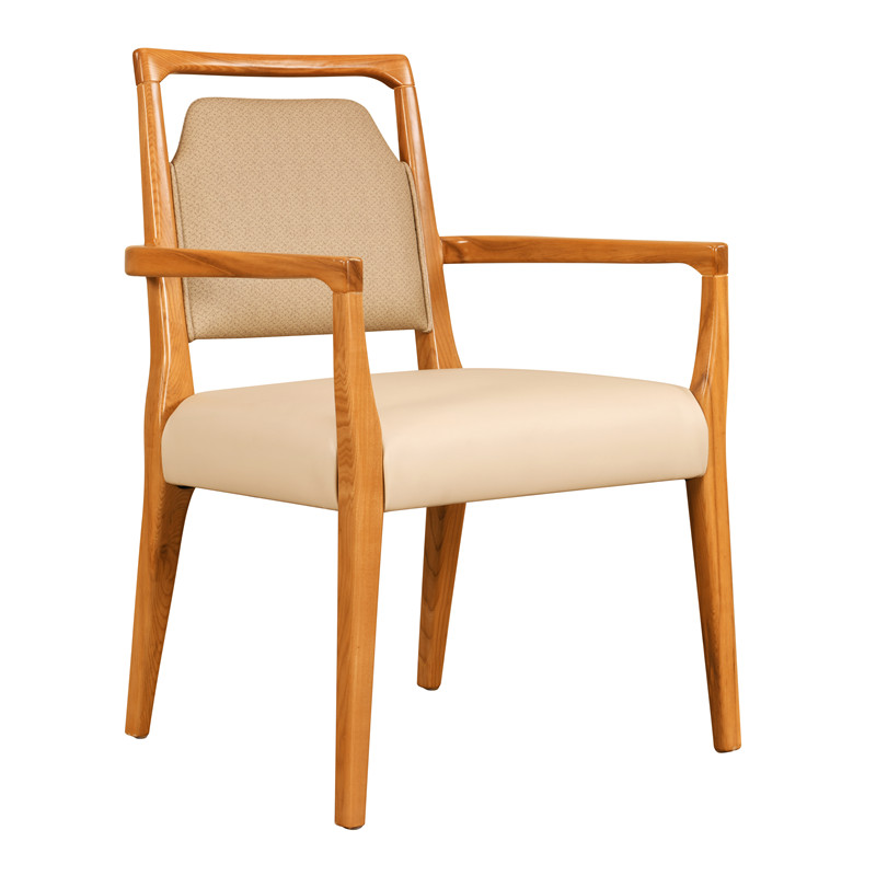 書椅 基材:為實木白蠟木框架結(jié)構(gòu)。 適老化處理 坐面高450H,扶手高620H,高硬度海綿坐包,全扶手設(shè)計
